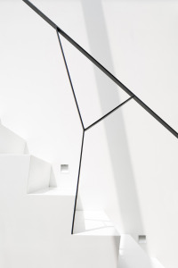 Minimalist White Staircase with Black Railings